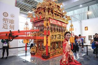 ★昨日,第五届中国非物质文化遗产博览会在山东济南开幕,来自全国的优秀非物质文化遗产项目及传承人现场展示非遗精华。图为宁波花轿。(中新社)