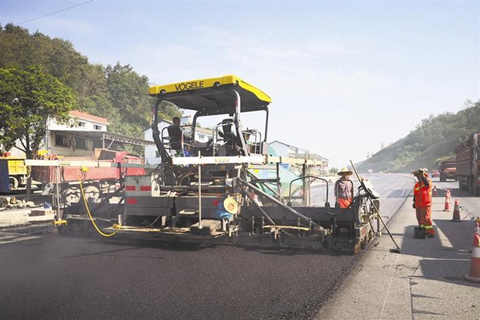 昨天,宜兴公路黄花段正在路面刷黑。宜兴公路夷陵区段作为宜昌市公路骨架的重要组成部分,承担兴山、神农架、巴东及渝东地区公路运输重任。项目总投资2100多万元,计划于年内完工。(记者王昌明)