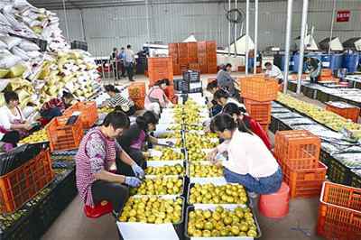 近日,点军区桥边镇双堰口村柑橘打蜡厂,当地村民正忙着为一批出口产品装箱。连日来,当地2000多亩柑橘进入丰收期,经过品改后的柑橘果实饱满、酸甜可口,市场行情看好。除了销往全国各地,还出口俄罗斯、菲律宾等国家。(记者黄翔)