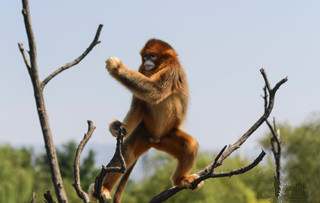 ★昨日,一只金丝猴好似在枝头“秀功夫”。“十一”假期临近,济南野生动物世界的动物们呆萌“出镜”,吸引不少游客前来亲近。(中新社)