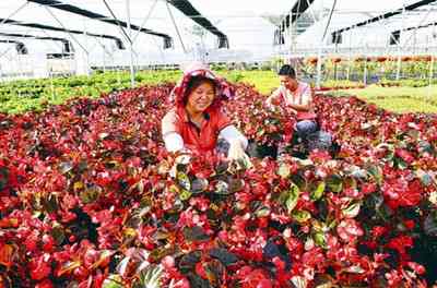 昨日,夷陵区龙泉镇法官泉村“花园里”农业有限公司,花农正忙着养护一批观赏海棠。近年来,龙泉镇因地制宜发展花卉苗木绿色产业,不仅带动当地农民致富,还绿化美化乡村环境。(记者黄翔)