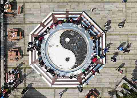 ★“寻味”2018茅山美食节暨美食大赛昨在江苏东方盐湖城举行,吸引了大批民众前来,徜徉山镇、品尝地方佳肴,感受独特的茅山美食文化。图为直径十米的太极养生锅。(中新网)