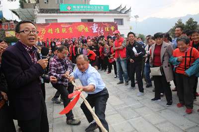 秭归县茅坪镇陈家坝村与该县结对帮扶单位秭归县机关事务管理局联合,昨日在该村文化广场举办村落农民运动会。拔河比赛、踢毽子、打乒乓球等项目轮番展开,着实让老人们感受到了儿时的快乐。(记者何宝喜)
