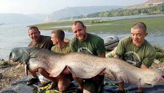 ★当地时间10月12日,西班牙几名垂钓者在Segre河钓到一条重约110公斤、长超过8英尺(约2.4米)的鲶鱼,这是西班牙有史以来最大的鲶鱼之一。(中新网)