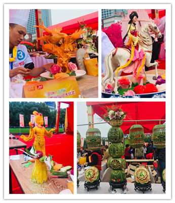 昨日,第四届中国厨师职业技能大赛在夷陵广场举行。一把小刀、一个南瓜、一个萝卜……舌尖上的美味到他们手中瞬间就能变成栩栩如生的雕塑。(记者赵璟一)