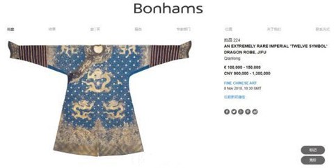 ★11月8日,乾隆皇帝的一件“御制蓝绸捻金银绣金龙十二章吉服袍”将在伦敦拍卖,预估价为90万-130万英镑。1912年,在印度服役的英国准将奥夫利-萧尔在北京旅游时购买了这件龙袍。(中新网)