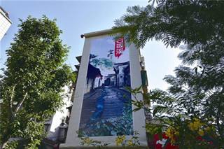 11月1日清晨,铁路坝社区街头小公园的巨型“石板溪—宜昌记忆”喷绘。西陵区先后打造一批街头绿化小景、宣传景观小品和特色公益广告,增强了城市文化内涵。(记者黄翔)