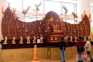 ★10月31日,在福建省莆田市会展中心内,一尊万手万眼大型观音像吸引了许多人驻足观赏。这尊万手万眼观音像选用名贵木料,历时近3年制作而成,重达3.51吨。(中新网)