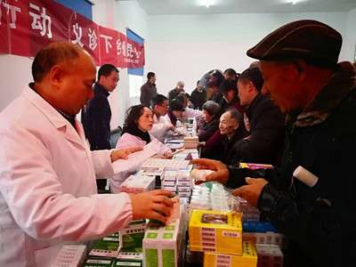 昨日上午,秭归县社保征稽局与秭归县人民医院组织10余名专家来到杨林桥镇西阳坪开展扶贫义诊活动。专家现场为村民把脉问诊,免费发放药品和提供健康咨询服务。(记者何宝喜)
