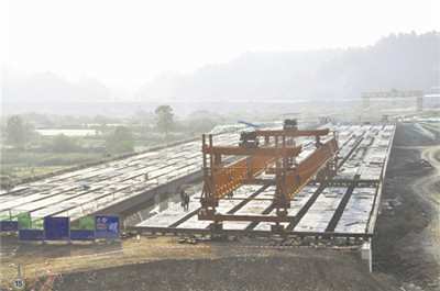 昨日,点军区南站路跨桥边河桥正在进行铺装。该项目起点为点军大道,终点为将军路,全长1651.808米,双向六车道刷黑路面。建成后将为拓宽城市骨架,拉动点军发展起到积极作用。(记者黄翔)