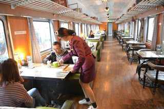 ★成都东郊记忆广场上一辆绿皮火车被废弃多年,如今被分成三间重新投入使用,改装成了咖啡厅和餐吧,前来消费的大多为一些“尝鲜”的年轻人。(中新网)