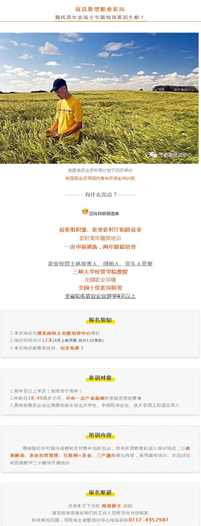 宜昌新型职业农民 现代青年农场主专题 培育班招生