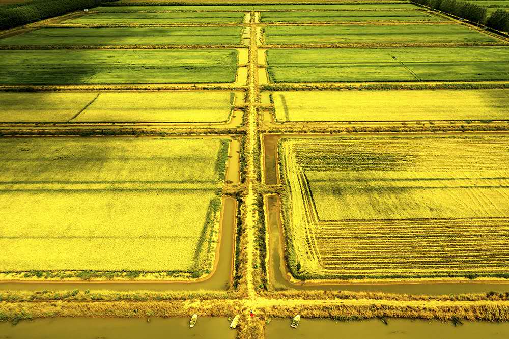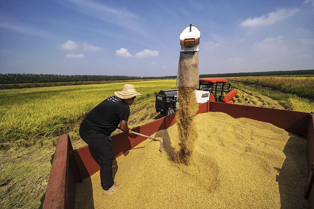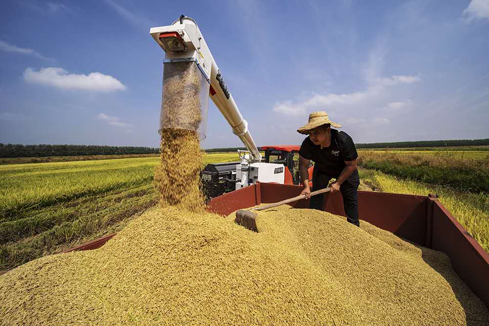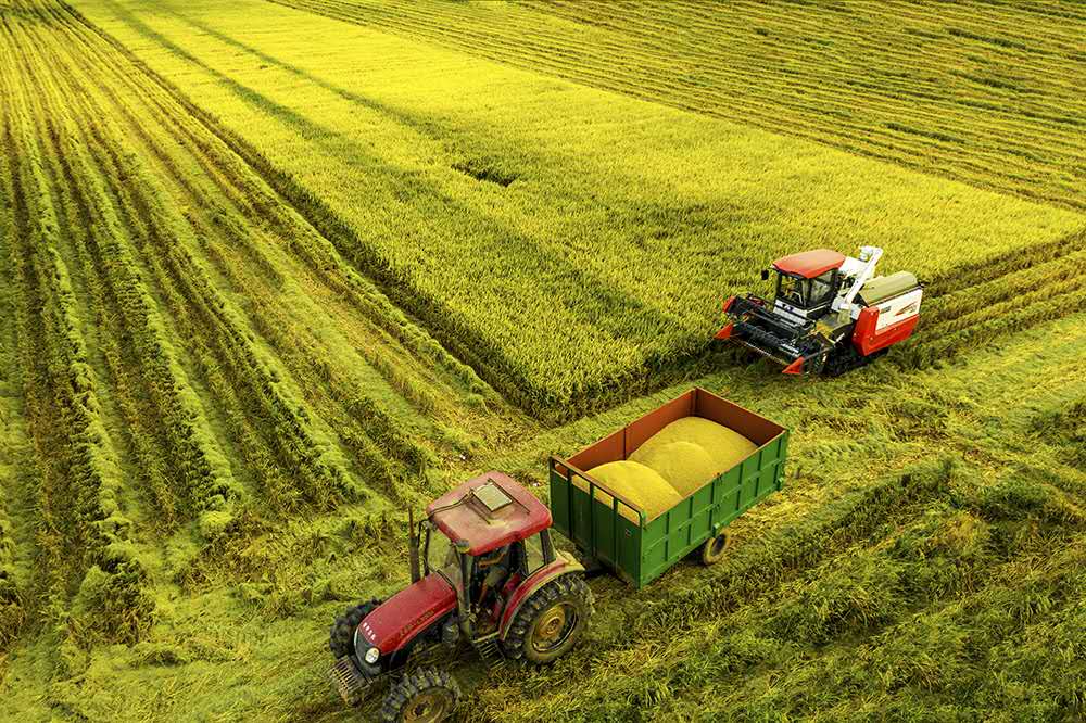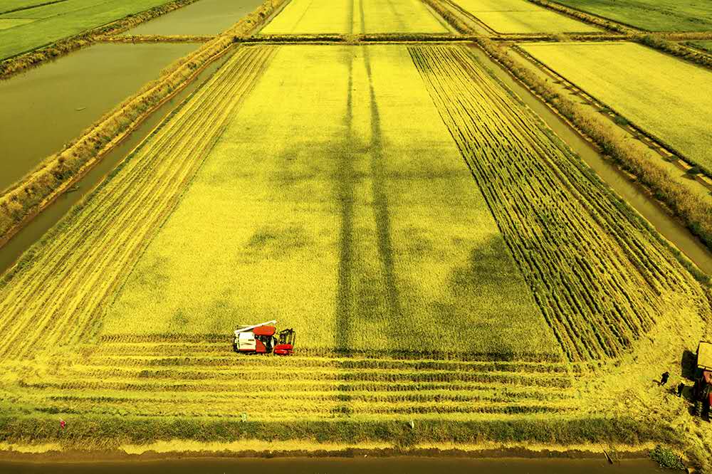 虾稻田水稻收获