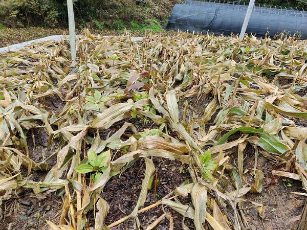 2、覆盖秸秆。对于多年生草本药用植物,可在寒潮来临前用稻草、茅草等秸秆遮盖于药材植株行间,覆盖厚度5cm左右。对寒冻敏感的木本药用植物,可用稻草或麦秸将整树捆包,结合根际培土防冻。