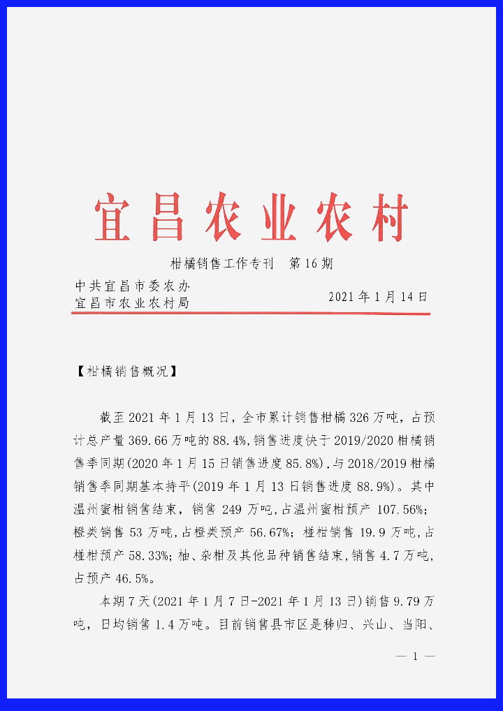 柑橘销售工作专刊第16期