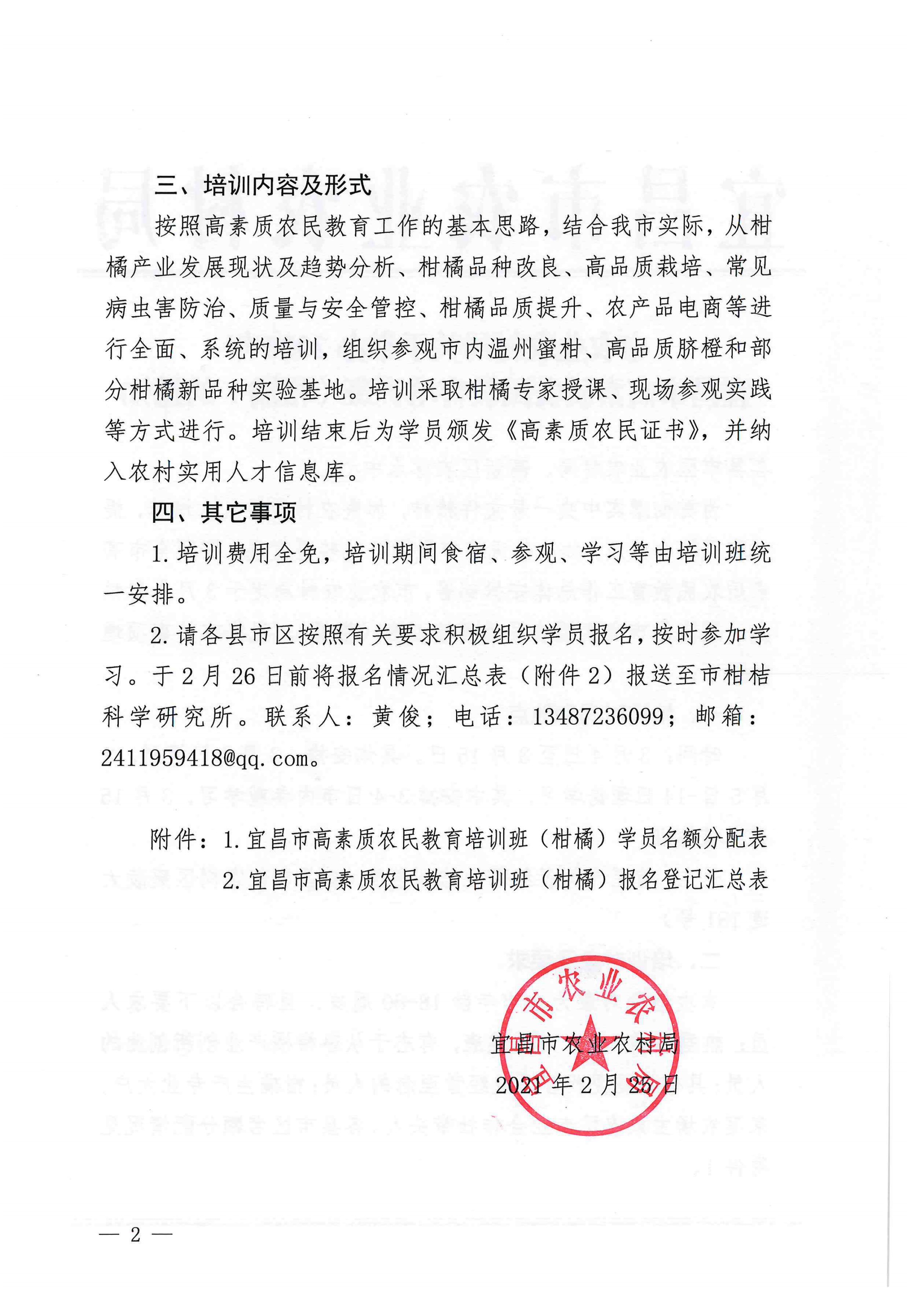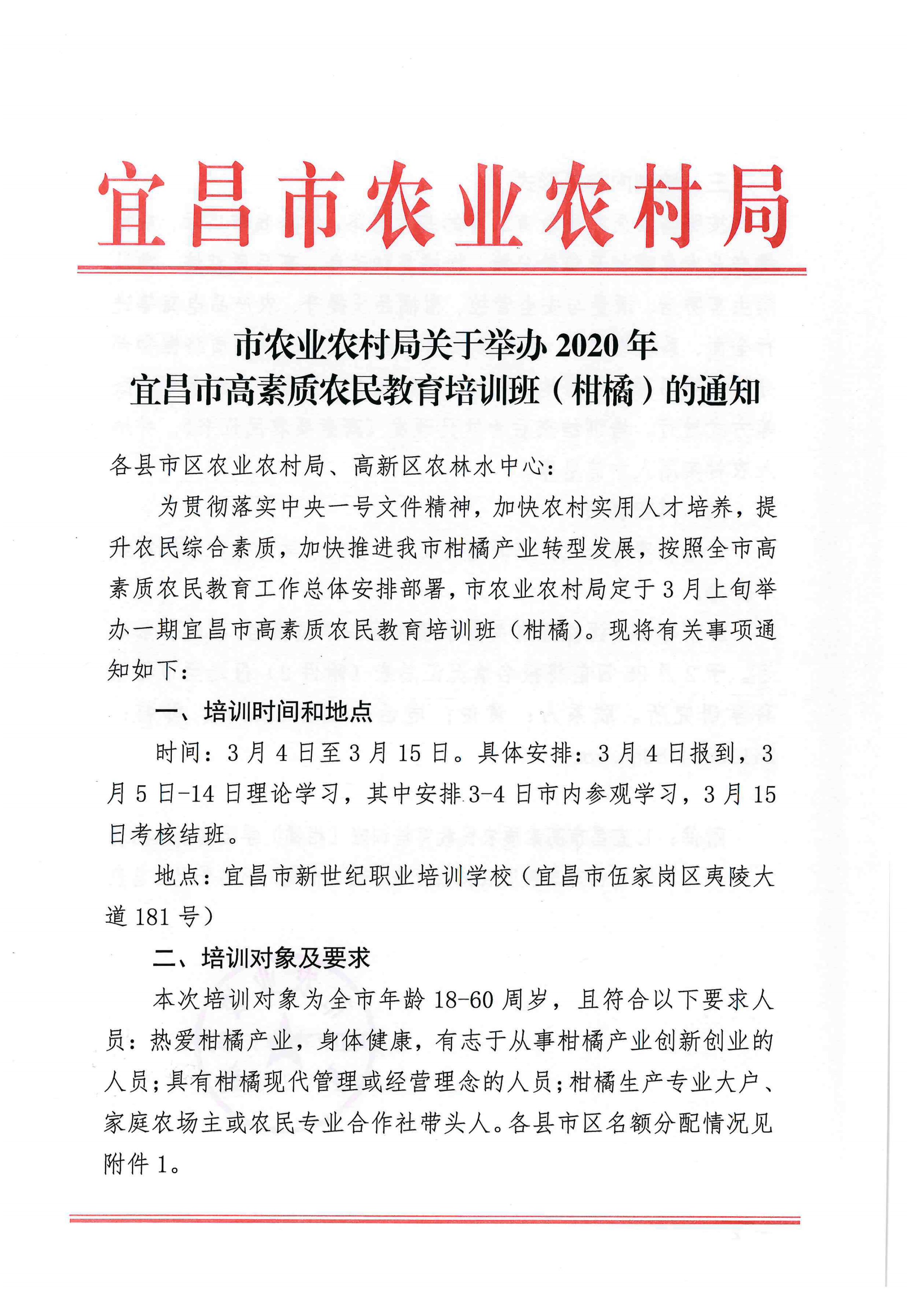 关于举办柑橘高品质栽培专题培训班的通知