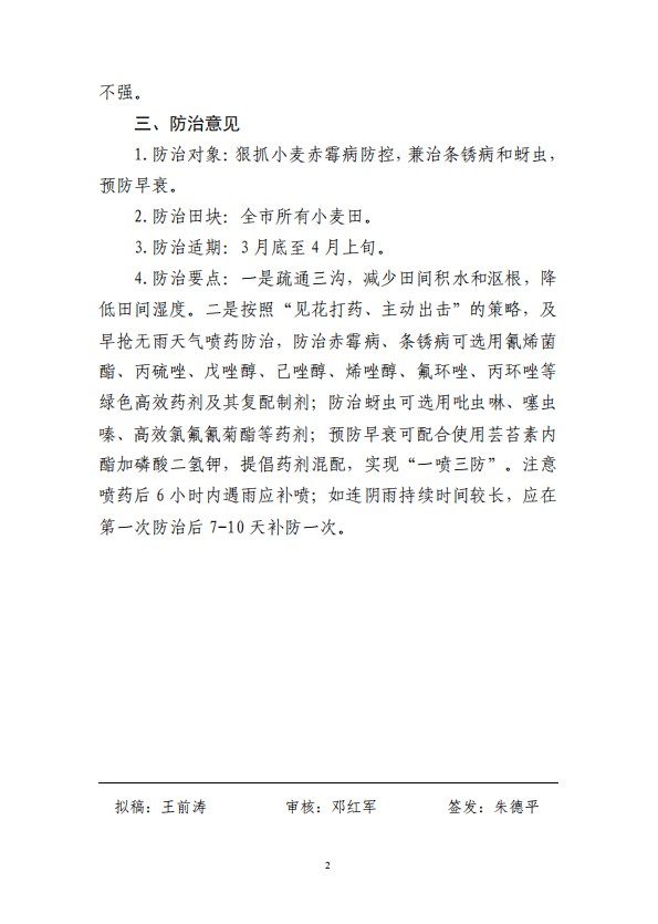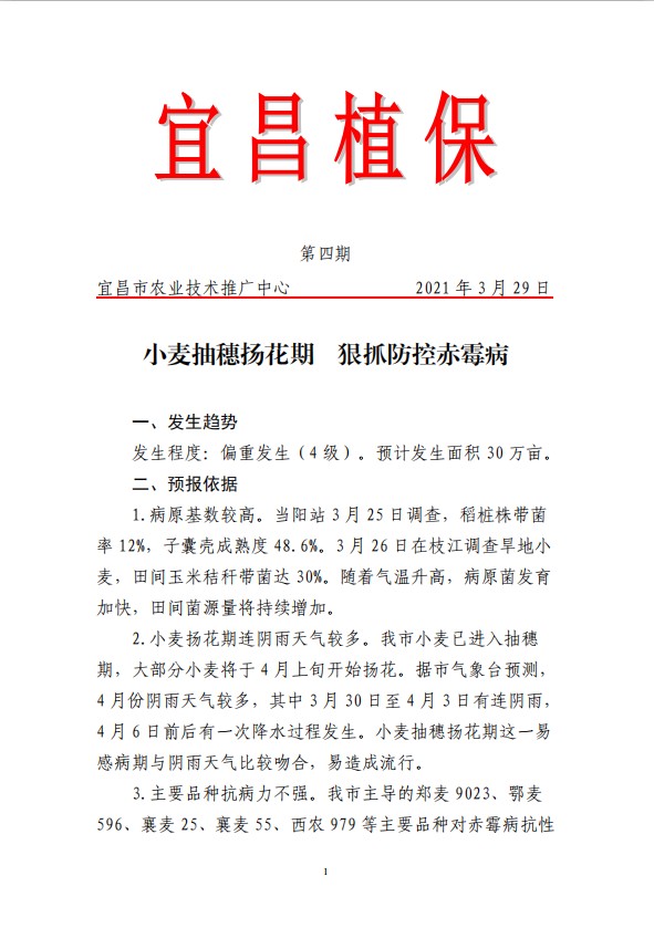 宜昌植保2021年第四期 小麦抽穗扬花期 狠抓防控赤霉病