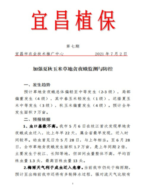 宜昌植保2021年第七期 加强夏秋玉米草地贪夜蛾监测与防控
