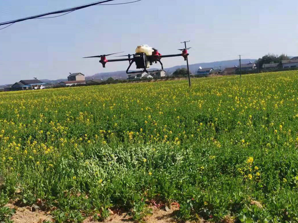 图:枝江市信达农业专业合作社开展油菜“一促四防”飞防服务
