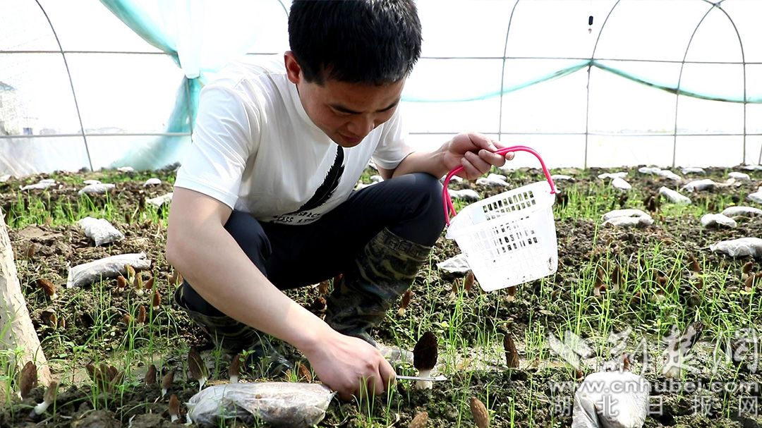 这天,屈东奎刚从宜昌送完羊肚菌回来,就又忙着去给大棚加水喷淋,查看湿度温度表,采摘下一批菌菇,因为村里的工作队今天又带来了新的订单,并联系了枝江的三家电商平台帮助屈东奎拓展销路。