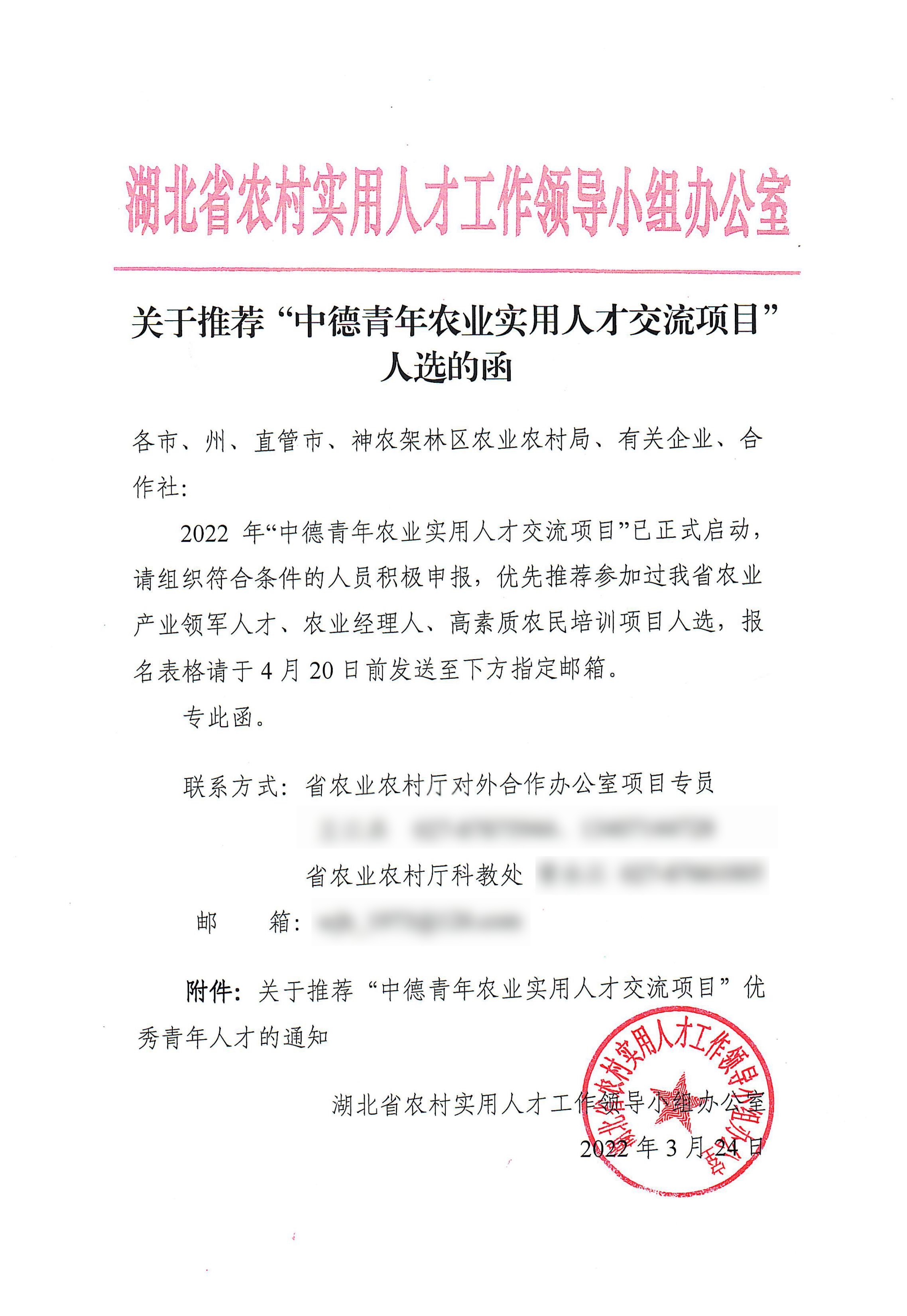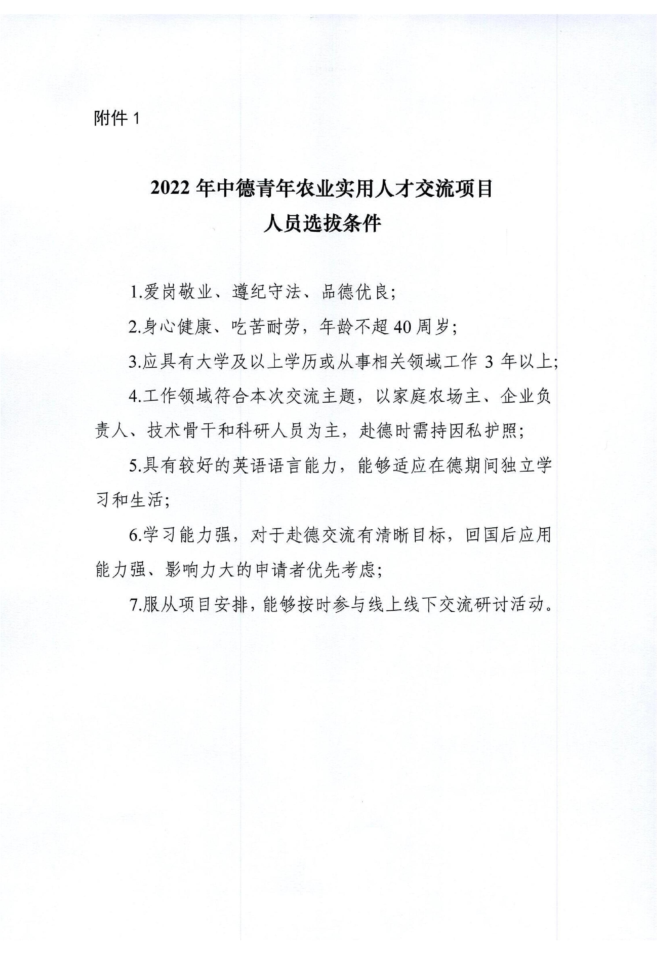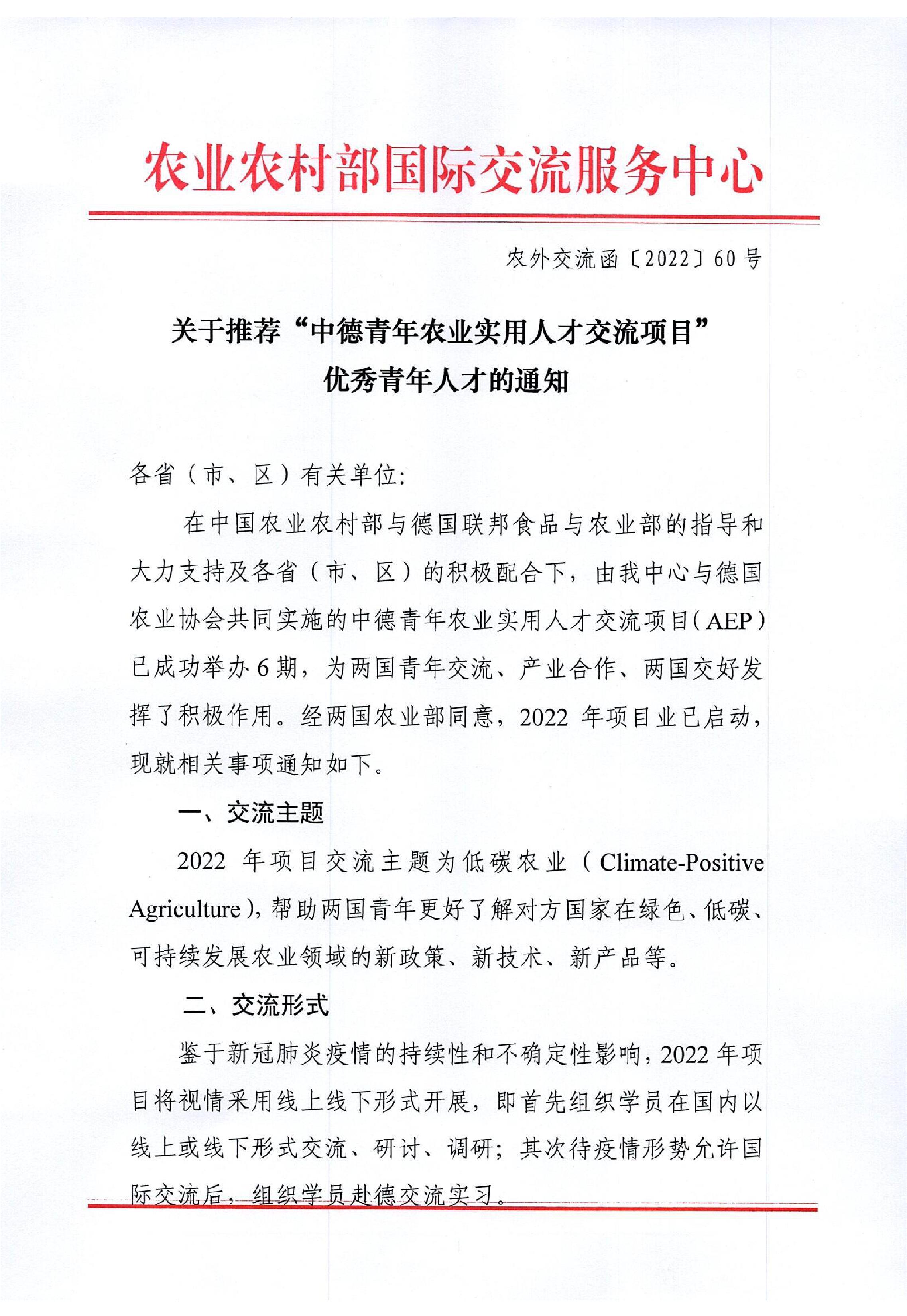 关于推荐“中德青年农业实用人才交流项目”优秀青年人才的通知