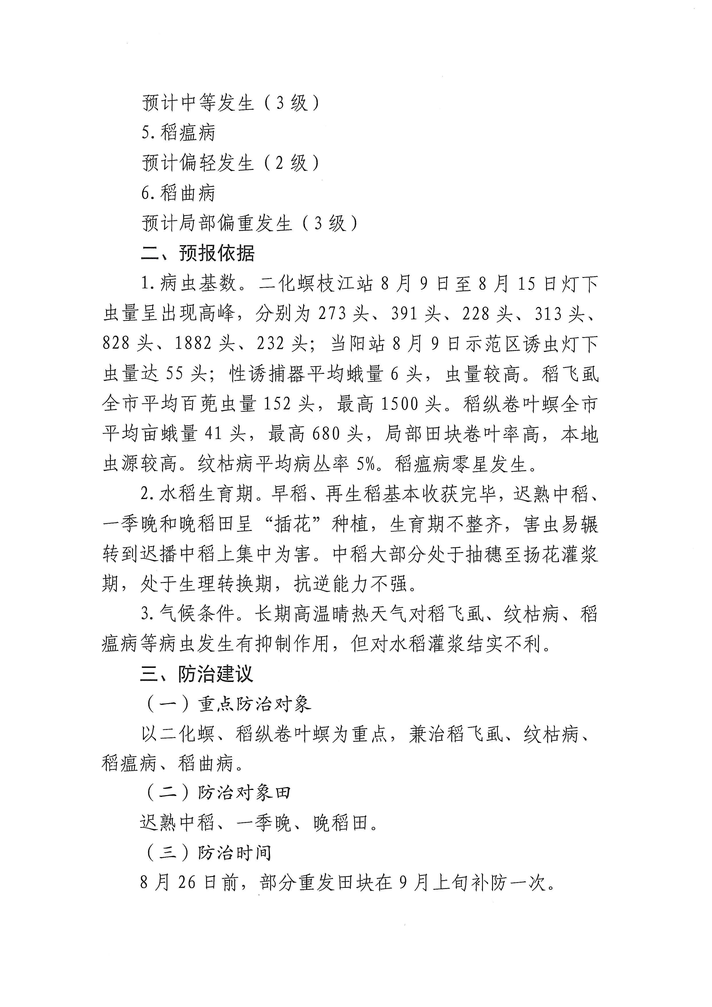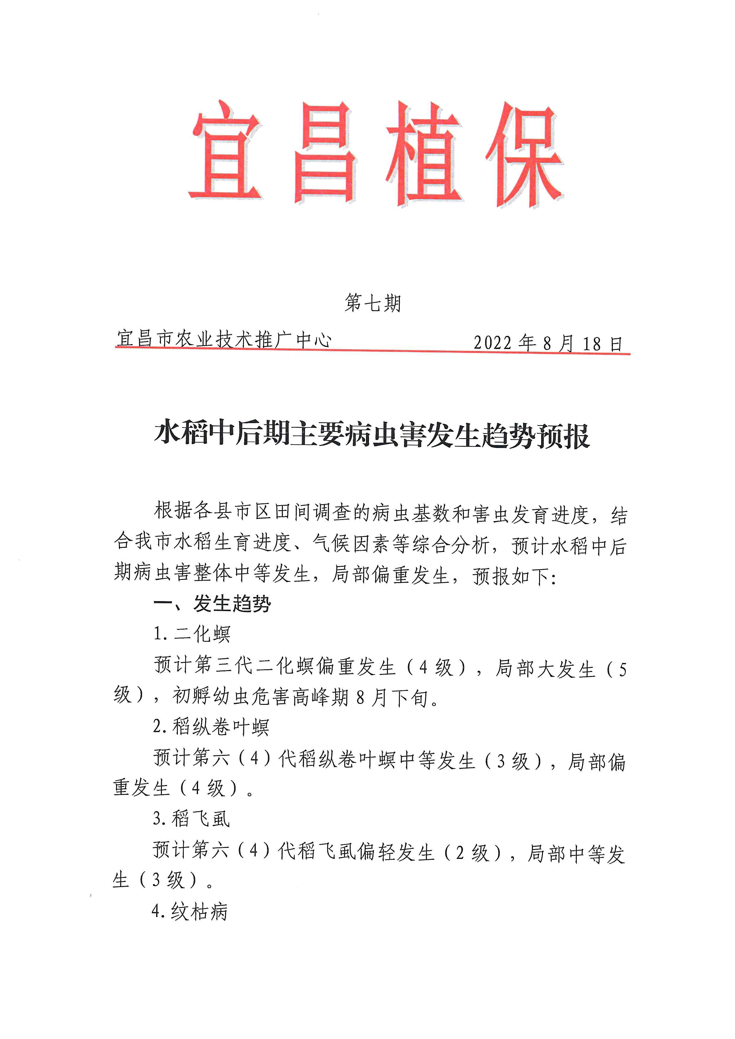 宜昌植保第7期: 水稻中后期主要病虫害发生趋势预报