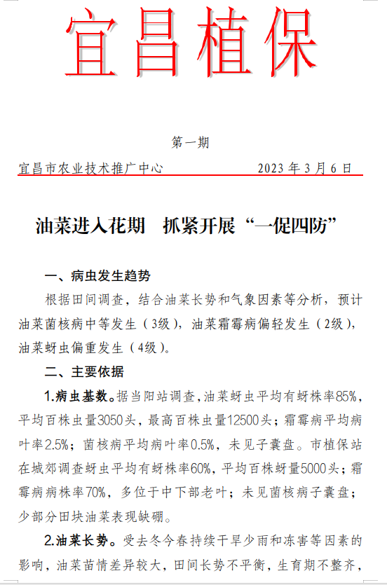 油菜进入花期 抓紧开展“一促四防”