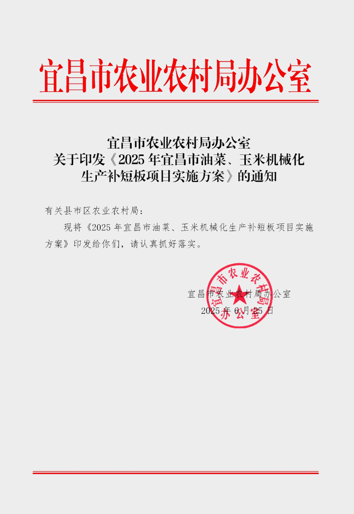 2025 年宜昌市油菜、玉米机械化生产补短板项目实施方案