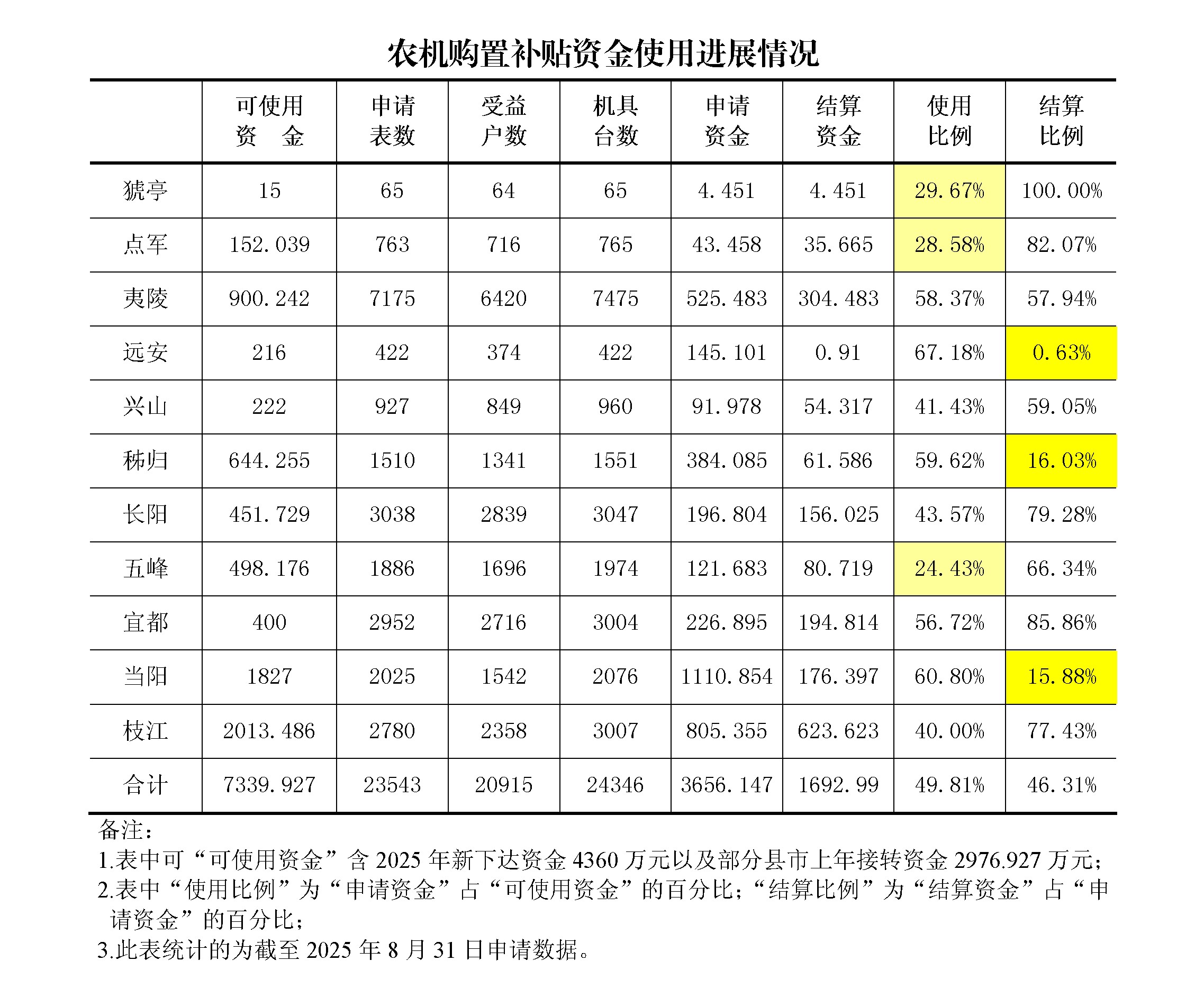 2025年中央下达宜昌市两批农机购置补贴资金4360万元,部分县市接转资金2976.927万元,目前全市农机购置补贴可使用资金达到7339.927万元。