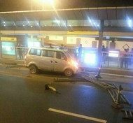 >面包车车轮掉落失控撞护栏