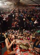 昨晚,华东首届万人火锅宴在安徽合肥滨湖“中国鼓”展示中心边举行,近万名当地市民参加这场免费的火锅宴席狂欢。在活动现场,除了热气腾腾的火锅,一拨身着比基尼的女孩惊艳亮相,除了进行比基尼展示外,还和市民一道品尝火锅。(合肥生活网)