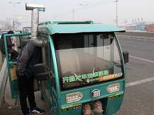 昨日,山东滨州,一辆经过改装的三轮车停在街头。日前,滨州一名毕姓大爷将自己的电动三轮车进行了一番改装,装上烟筒生炉子取暖,且还能给手机充电、看电视。大爷如此深度的改装让网友大呼“高手在民间”,“完爆”车载空调,每天都会吸引很多市民围观一番。(中新网)