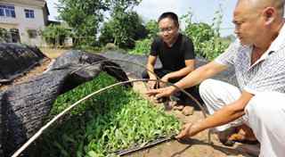 昨日,当阳群益村村干部在暴雨后组织村民利用秧盘移苗的方式培育莴苣幼苗,在灾后投入种植。(记者付蓓蓓)