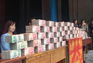 近日,甘肃临洮县机场村广场,围满了前来排队领钱的村民,村支书边国胜向村里的80余户农民现场发放种植树苗分红现金560万元,最多的农户领到10万元分红。在此之前,已有部分农户领取分红,此次分红共计1000多万元。(中新网)