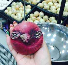 在超市发现了一个洋葱,好像一只愤怒的小鸟。