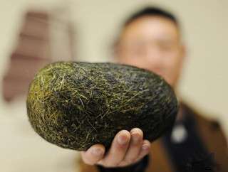 昨日,湖北省十堰市市民王先生称,他的一个朋友杀猪时,在猪肚子里发现了一枚重逾两斤半的怪蛋。王先生上网查了查,发现怪蛋和网上报道的“猪宝”一模一样,每克卖到了5000元。然而经畜牧专家初步鉴定,这应该是猪吃食的时候,不小心吃进猪毛,久而久之形成了难以消化的毛团,并没有什么价值。(中新网)