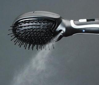 这款梳子内部带有水雾喷射装置,通过内置的储水盒,可以将水存储在梳子内部。在梳子把手上,带有按钮,用户按下按钮,就可以从梳子头部碰射出水雾,从而方便大家梳头。