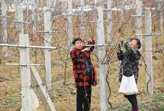 2月20日,枝江安福寺葡萄园里,果农在田间地头忙着给葡萄剪枝、催芽、定枝,期盼今年有个好收成。安福寺大力推进葡萄、桃子、李子等水果的科学种植、养护,通过科学种植促进果树增产、助力果农增收。(记者李风)