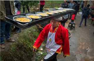 脚穿草鞋、头裹白布,顶着装有几十斤重菜肴的长托盘,穿梭在乡宴的席间 ,俗称“打盆”……近日获悉,38年来,四川合江先滩镇的陈长发,头顶传菜超过30万碗,从未失过手。据悉,打盆起源于清中期,要求传菜者具备超强的身体协调能力、体力和专注力。(华西都市报)