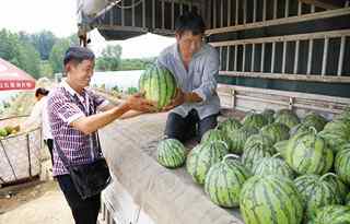 5月31日,夷陵区鸦鹊岭镇田畈村瓜农正在搬运销往武汉方向的麒麟瓜。位于鸦鹊岭田畈村和龙潭村等地的麒麟瓜相继成熟,吸引不少荆州、武汉等地的客商前来收购第一批有机麒麟瓜,批发价高达3.6元/公斤至4.4元/公斤。该地区麒麟瓜具有富硒、皮薄、瓜瓤脆甜等特点,远销至武汉、北京等地。(记者黄余洋)