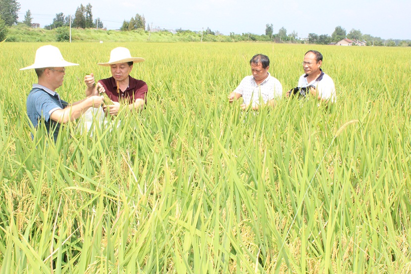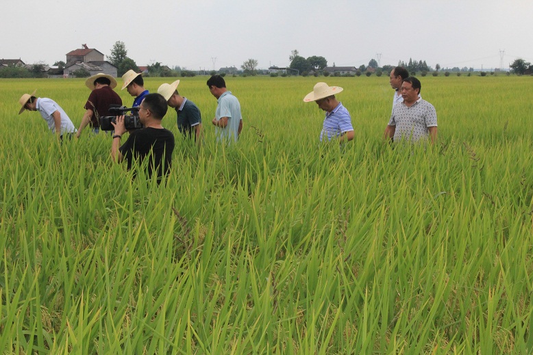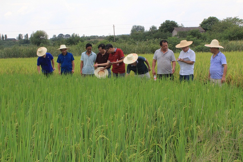 在田间查看高温热害天气对水稻孕穗及抽穗扬花的影响 在田间调查结实情况 8月28日,由省农技推广总站调研员羿国香带队的省农业厅秋粮调研组对我市枝江中稻产量进行测产评估,并对我市中稻及秋粮生产形势进行了调查,评估了高温热害和水稻病虫害对我市秋粮生产的影响。据田间调查测产,样本田平均单产达到610公斤,预计枝江中稻亩产平均达到576公斤,比去年增4.7%。